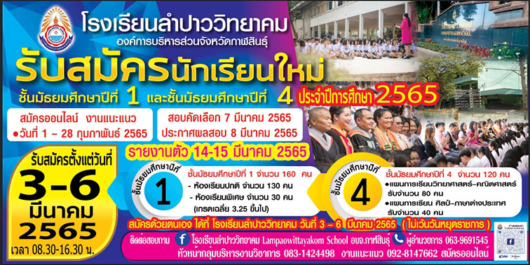 ประกาศรับสมัครนักเรียนชั้น ม.1 และ ม.4 ปีการศึกษา 2565